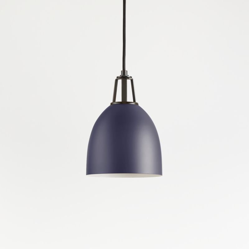Our Maddox collection mixes and matches finishes and features, creating the perfect combination for your home. Steel shades in a variety of shapes, sizes and modern hues pair matte exteriors and glossy white interiors that reflect light beautifully, accented by decorative socket caps and ceiling plates in a range of finishes. Strikingly simple with bold geometry, this small dome pendant light contrasts a softly rounded matte navy shade with its bright inner surface. Hang the adjustable-height blue pendant over a kitchen sink, coffee station or bedside table for a colorful, graphic look and useful illumination. Blake Tovin designed our exclusive Maddox collection to be as flexible and functional as the modern home.