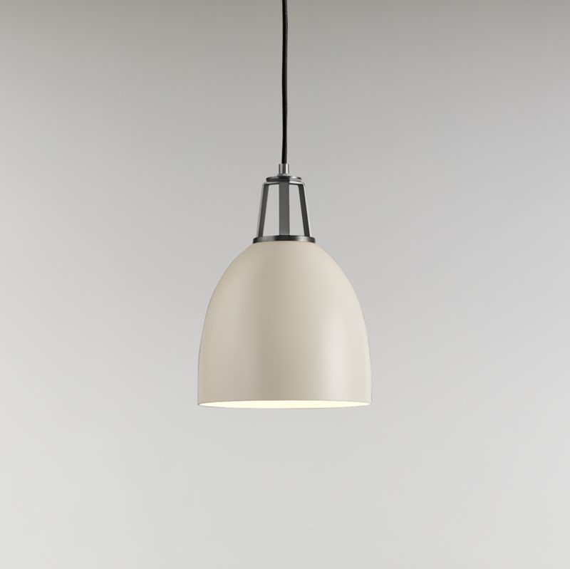 Our Maddox collection mixes and matches finishes and features, creating the perfect combination for your home. Steel shades in a variety of shapes, sizes and modern hues pair matte exteriors and glossy white interiors that reflect light beautifully, accented by decorative socket caps and ceiling plates in a range of finishes. Strikingly simple with bold geometry and brushed nickel details, this small dome pendant light in matte and shiny white curves softly. Hang the adjustable-height ceiling light over a kitchen sink, bar cart or bedside table for a clean, graphic look and useful illumination. Blake Tovin designed our exclusive Maddox collection to be as flexible and functional as the modern home.