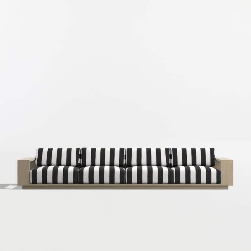 Mallorca 154" Wood 2-Piece Outdoor Sofa with Black and White Cabana Stripe Sunbrella ยฎ Cushions