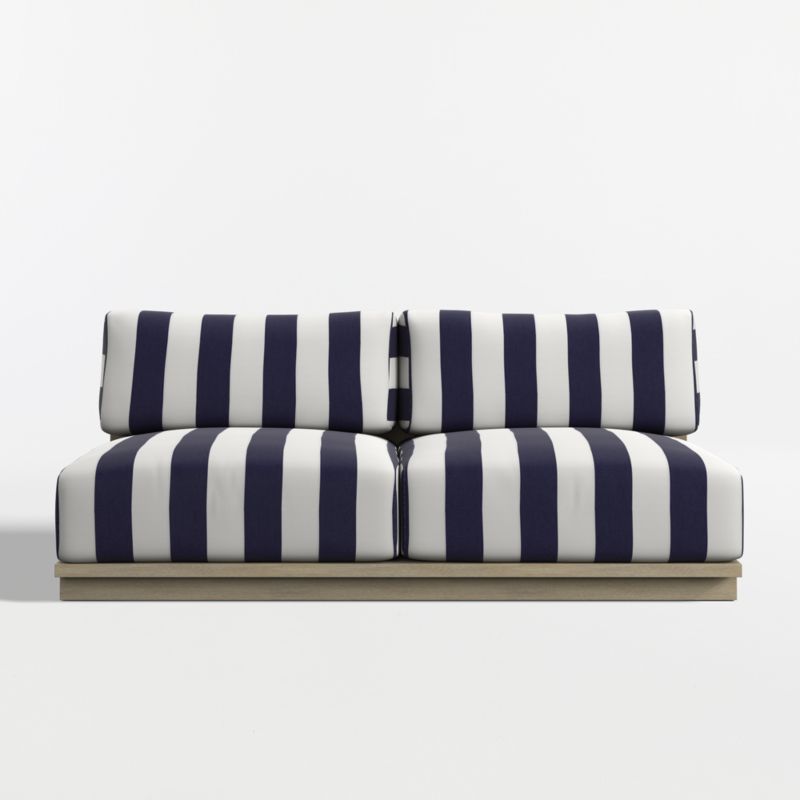 Mallorca 68" Wood Armless Outdoor Sofa with Navy and White Cabana Stripe Sunbrella ® Cushions