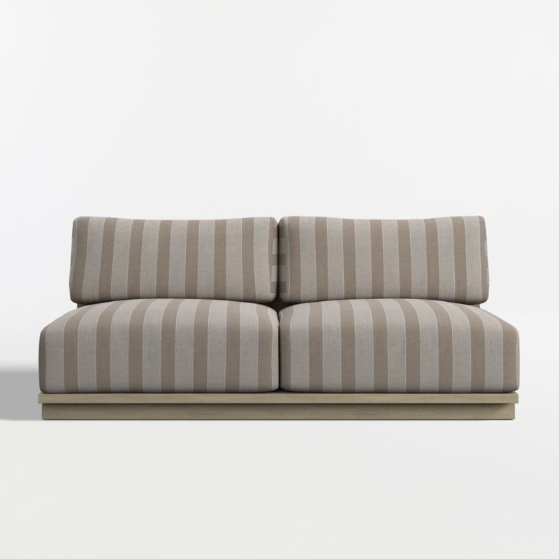 Mallorca 68" Wood Armless Outdoor Sofa with Range Dune Stripe Sunbrella ยฎ Cushions