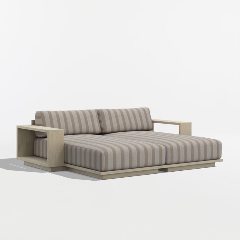 Mallorca 86" Wood Double-Chaise Outdoor Daybed with Range Dune Stripe Sunbrella ยฎ Cushions