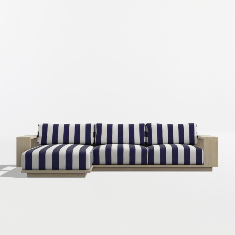 Mallorca Wood 2-Piece Left-Arm Chaise Outdoor Sectional Sofa with Navy and White Cabana Stripe Sunbrella ยฎ Cushions