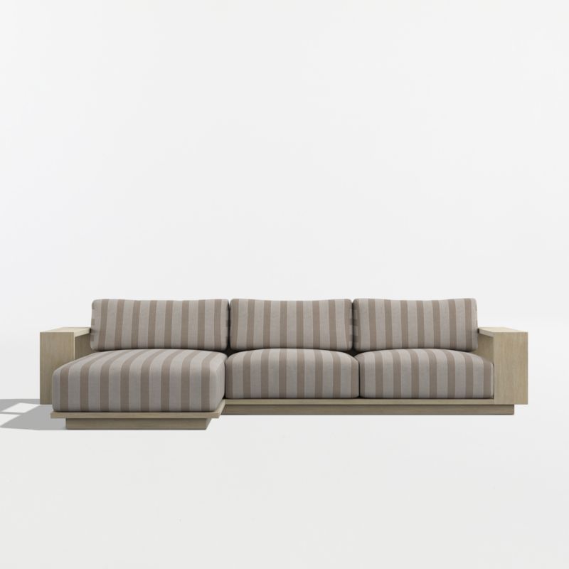 Mallorca Wood 2-Piece Left-Arm Chaise Outdoor Sectional Sofa with Range Dune Stripe Sunbrella ยฎ Cushions