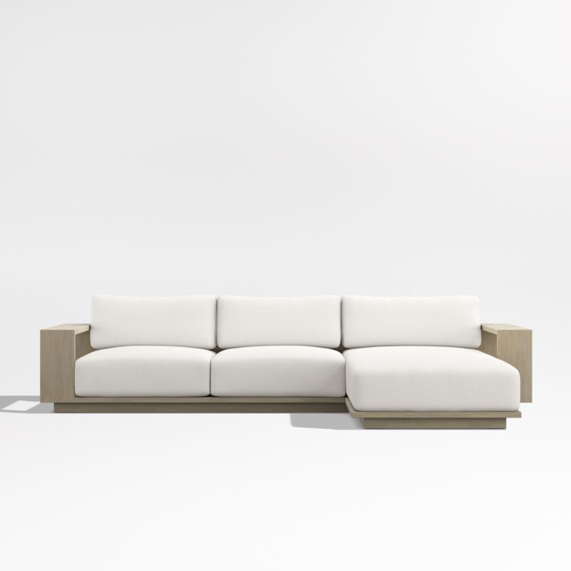 Mallorca Wood 2-Piece Right-Arm Chaise Outdoor Sectional Sofa with Canvas Canvas Sunbrella ยฎ Cushions