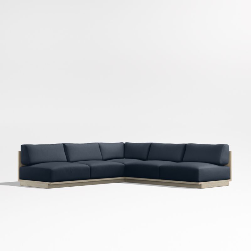 Mallorca Wood 3-Piece L-Shaped Armless Outdoor Sectional Sofa with Canvas Navy Sunbrella ® Cushions
