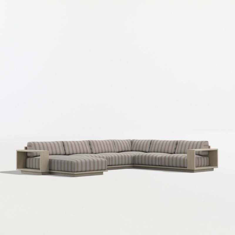 Mallorca Wood 4-Piece Left-Arm Chaise U-Shaped Outdoor Sectional Sofa with Range Dune Stripe Sunbrella ยฎ Cushions