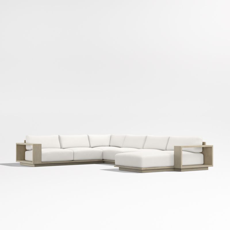 Mallorca Wood 4-Piece Right-Arm Chaise U-Shaped Outdoor Sectional Sofa with Canvas Canvas Sunbrella ยฎ Cushions