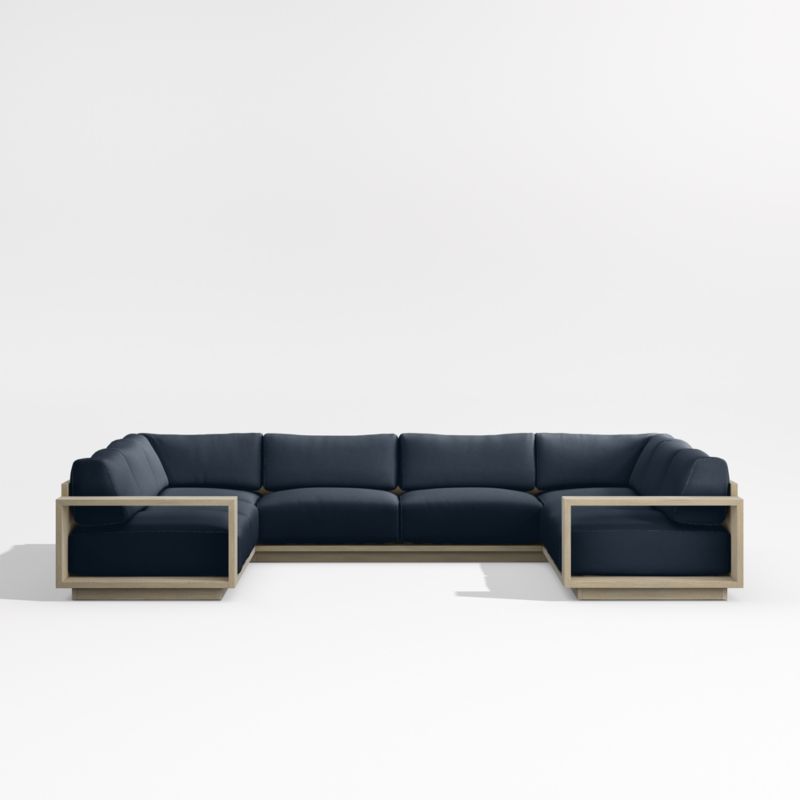 Mallorca Wood 5-Piece U-Shaped Outdoor Sectional Sofa with Canvas Navy Sunbrella ® Cushions