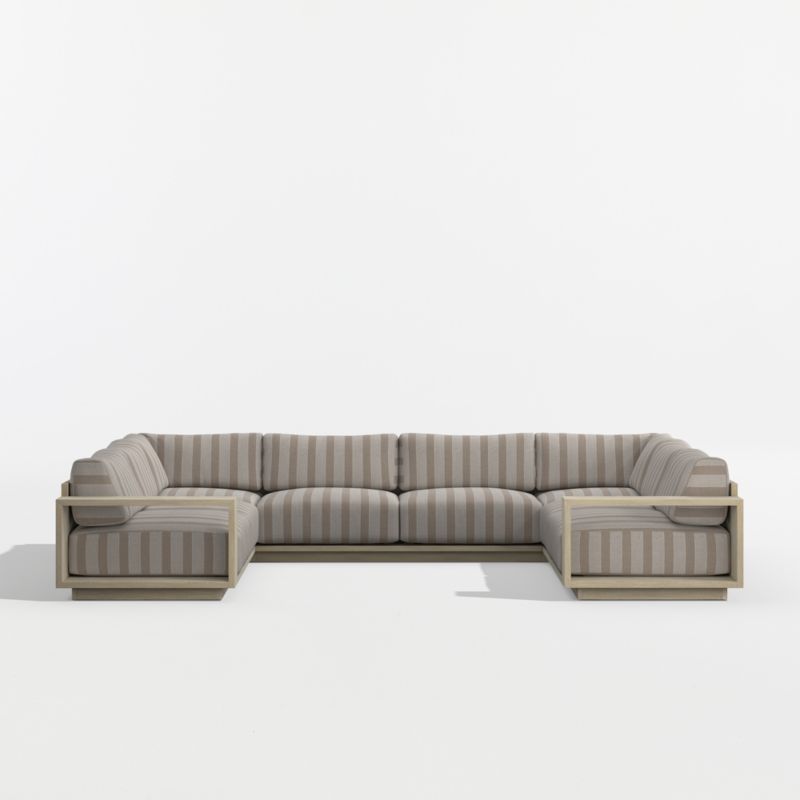 Mallorca Wood 5-Piece U-Shaped Outdoor Sectional Sofa with Range Dune Stripe Sunbrella ยฎ Cushions