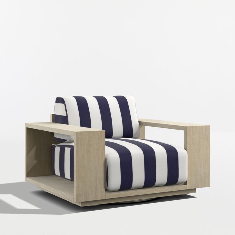 Mallorca Wood Outdoor Swivel Lounge Chair with Navy and White Cabana Stripe Sunbrella ® Cushions