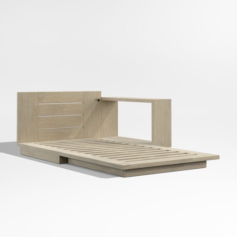 Wide planks of durable, sustainably sourced eucalyptus wood shape Mallorca's bold geometry, while a painted and wire-brushed finish emulates the look of weathered driftwood. The breezy slat frame of this outdoor chaise lounge offers a generous armrest—the perfect perch for your chilled drink, snack plate or summer read. To create the ideal low, loungy spot for soaking up the sun in style, complete the right-arm chaise lounge with a soft-yet-supportive cushion and the other sectional components from our exclusive Mallorca outdoor collection (sold separately).