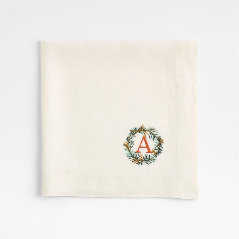 Dress up your dining table with a touch of wintry wonder. A sweet evergreen wreath embroiders our snowy ivory napkin for a seasonal table setting all winter long. Part of our Marin table collection, the napkin is made of quality European linen that's exceptionally soft and supple. Each napkin unfolds to a generous 22-inch square, pre-washed for extra softness. Tailored with mitered corners, the linen napkin pairs beautifully with modern and traditional dinnerware and cleans up easily in the washing machine and dryer after weeknight dinners or festive Christmas feasts.