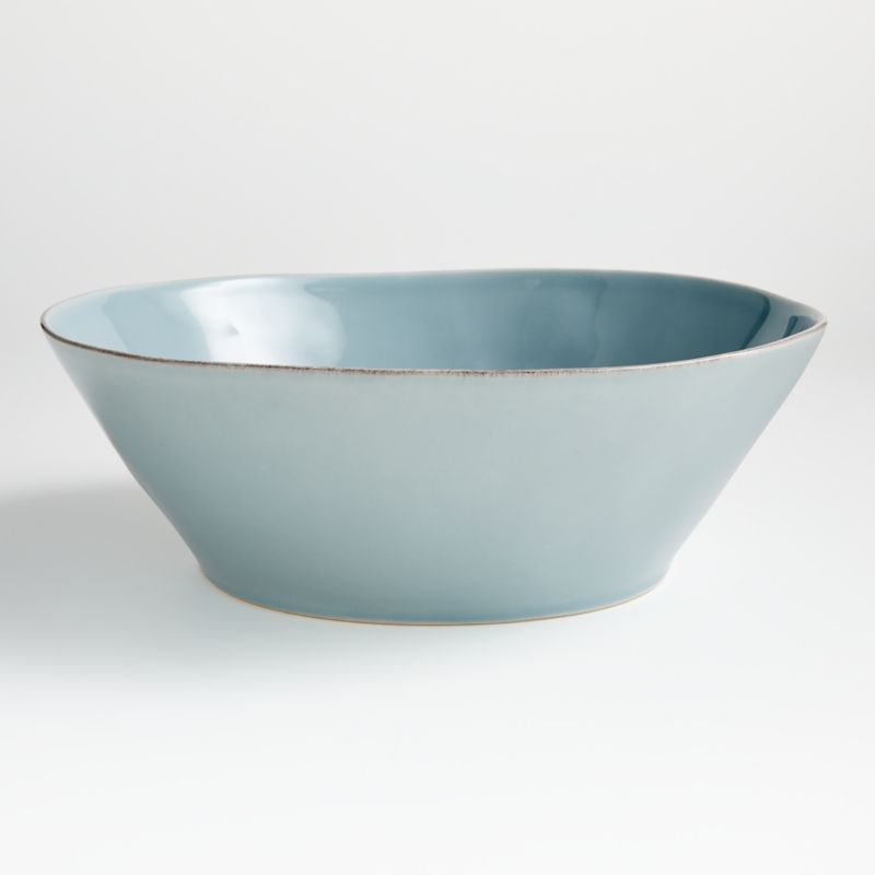 Our most coveted casual dinnerware collection recalls the warm hospitality of Portugal's quaint seaside cafes. Glazed robin's egg blue, each free-form stoneware serving bowl is hand-antiqued at the rim by Portuguese artisans.