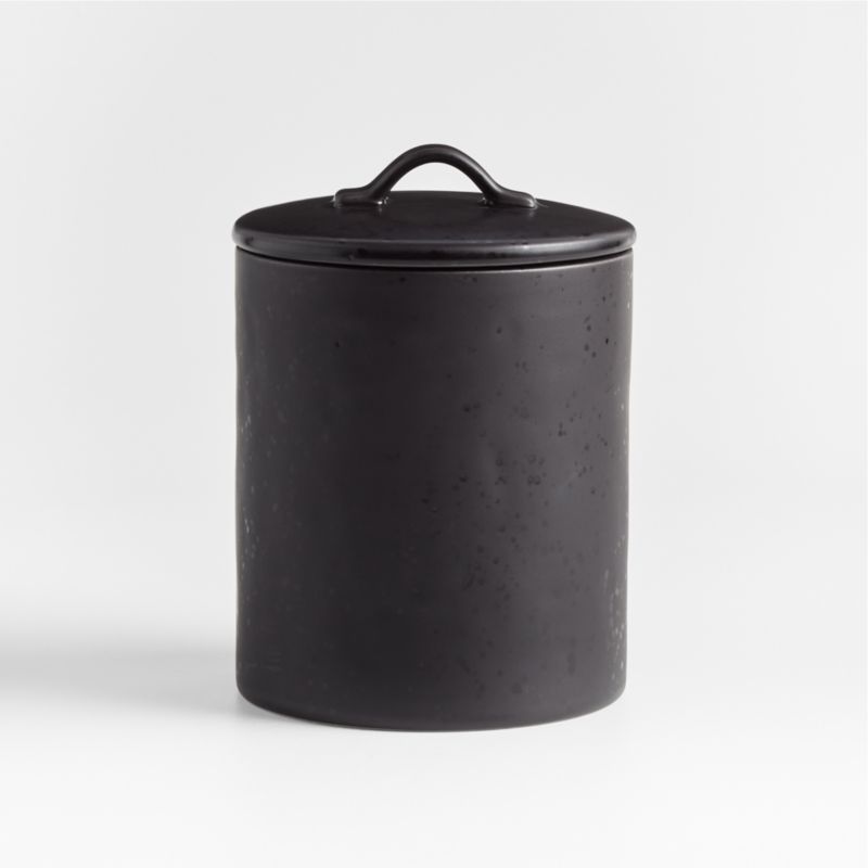 Made to complement our coveted Marin collection, this charming canister exhibits the same artisanal, organic lines. Finished with a reactive matte black glaze, the medium stoneware vessel stores essential ingredients on the countertop or open shelving and cleans up easily in the dishwasher. A silicone gasket provides an airtight seal, while the pinched handle finishes the display-worthy canister with a graceful touch. To complete the look, pair with the matching small, large and extra-large containers and our coordinating Marin dinnerware and serving pieces. Each piece will have its own distinctive look due to the reactive nature of the glaze.
