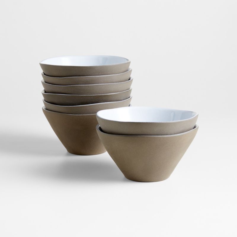 The newest evolution of our coveted Marin dinnerware crafts the collection's signature organic curves with Ecogres®—stoneware made of 90% recycled clay. Glazed glossy white within, each of these eight bowls shows off the raw charcoal clay on the exterior, with subtle hints of grey visible through the glaze. We love the way the smooth, shiny finish contrasts with the exposed stoneware to set a refined-yet-relaxed table in a classic palette. Hand-finished by highly skilled artisans in Portugal to make each one unique, the freeform-rim bowls stand up to everyday use and dishwasher cleaning. It's artisanal dinnerware designed to be lived with—whether for granola, soup, salad or dessert—day in and day out.