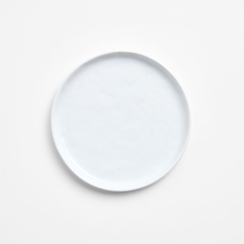 Mercer sets a table of refinement and rusticity. Finished by hand, the white-glazed appetizer plate takes on organic overtones with a freeform rim and a finely "hammered" surface that ripples the light. The durable porcelain plate is perfectly sized for hors d'oeuvres, cookies and snacks.