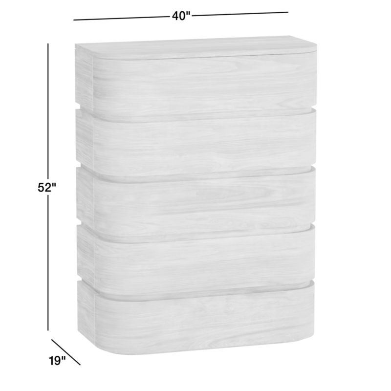 Milano looks to Italian design for its modern way with wood. Walnut veneer shapes the dresser with extravagantly curved corners and seamlessly integrated drawers that put all the focus on the beautiful wood grain. Recessed accents divide the tall dresser horizontally, lending linear interest as well as carving out the five drawers with hidden finger pulls. A stunning addition to your bedroom, the dresser is part of our exclusive Milano bedroom collection.