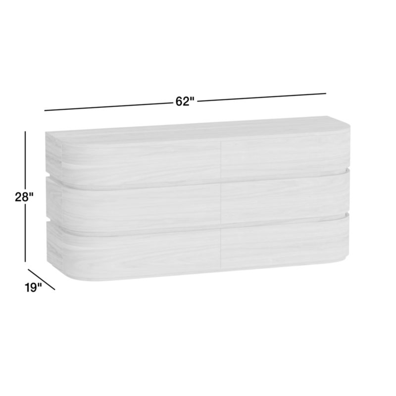 Milano looks to Italian design for its modern way with wood. Walnut veneer shapes the dresser with extravagantly curved corners and seamlessly integrated drawers that put all the focus on the beautiful wood grain. Recessed accents divide the dresser horizontally, lending linear interest as well as carving out the six drawers with hidden finger pulls. A stunning addition to your bedroom, the dresser is part of our exclusive Milano bedroom collection.