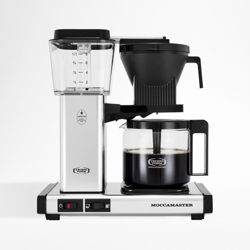 From the heart of The Netherlands, this premier coffee maker combines sleek commercial styling with optimal features for a fast, full-bodied brew. Each coffee maker is handmade and individually tested, with a durable, high-grade metal exterior, glass carafe, and energy-efficient copper heating element that heats water between 196 to 205 degrees for optimal extraction. Nine-hole water outlet arm assures maximum dispersion, while the cone-shaped brew basket is designed for the ideal coffee/water contact time. Clear, calibrated water reservoir is easy to fill. The hot plate heating element will never burn or scorch coffee, holding the temperature between 175 and 185 degrees.