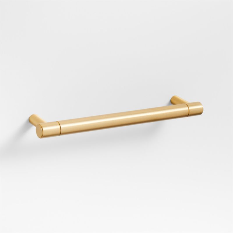 Sometimes it's the small things that pull a room together. That's why we've designed a hardware collection with modern silhouettes and a touch of tradition to give your kitchen and bathroom that perfect finishing touch. Grooved detailing lends an industrial vibe to this refined bar pull. Crafted of gleaming brass, the five-inch pull has an understated geometry enhanced by the brushed finish. Hardware is included to make it easy to refresh the look of dresser drawers, cabinet doors and vanities.