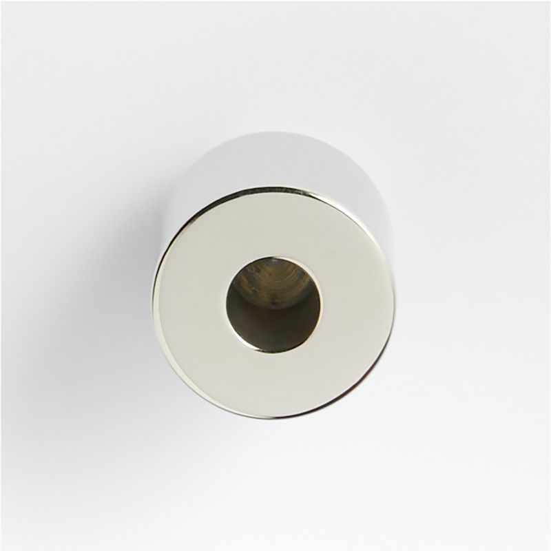 Sometimes it's the small things that pull a room together. That's why we've designed a hardware collection with modern silhouettes and a touch of tradition to give your kitchen and bathroom that perfect finishing touch. Crafted of brass, this flat-front knob has an industrial appeal enhanced by the shiny chrome finish. A central circular cutout and pedestal base add dimension to this cylindrical knob. Hardware is included to make it easy to refresh the look of dresser drawers, cabinet doors and vanities.