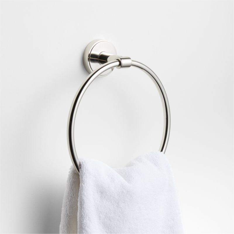 Sometimes it's the small things that pull a room together. That's why we've designed a hardware collection with modern silhouettes and a touch of tradition to give your bathroom that perfect finishing touch. Grooved detailing and a shiny chrome finish lend an industrial vibe to this hand towel ring. Anchored to the wall by a scaled-up circle, the round brass towel hanger has an understated geometry that we love. Provided hardware makes it easy to refresh the look of bathrooms and powder rooms.