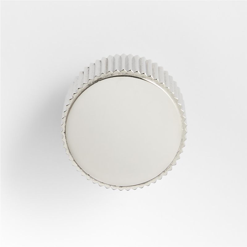 Sometimes it's the small things that pull a room together. That's why we've designed a hardware collection with modern silhouettes, clean lines and a touch of tradition to give your cabinets and drawers that perfect finishing touch. Made of brass finished in shiny chrome, this knob lends industrial chic to a minimalist design. Floating on a recessed cylinder, the round top sports fluted sides for decorative texture and a good grip. The knobs easily fastens to drawers and doors with included hardware.