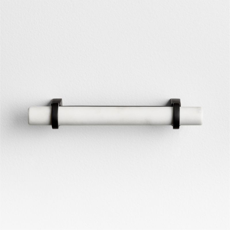 Sometimes it's the small things that pull a room together. That's why we've designed a hardware collection with modern silhouettes, clean lines and a touch of tradition to give your kitchen or bath that perfect finishing touch. Showcasing naturally beautiful white marble, our pull elevates a cabinet, dresser or vanity with an eye-catching organic accent. We love the way the matte black bracket cradles the slender marble rod, creating crisp contrast that's always modern, always classic. Our four-inch bar pull instantly dresses up a drawer or door anywhere in the home.