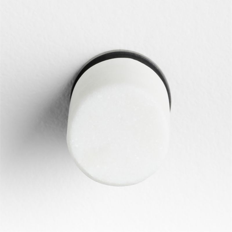 Sometimes it's the small things that pull a room together. That's why we've designed a hardware collection with modern silhouettes, clean lines and a touch of tradition to give your kitchen or bath that perfect finishing touch. Showcasing naturally beautiful white marble, our knob elevates a cupboard, dresser or vanity with eye-catching organic accents. We love the geo mix of a white marble cylinder stemming from a matte black base, creating crisp contrast that's always modern, always classic. Crafted with black-finished brass, the easy-to-grab cabinet knob instantly dresses up a drawer or door anywhere in the home.