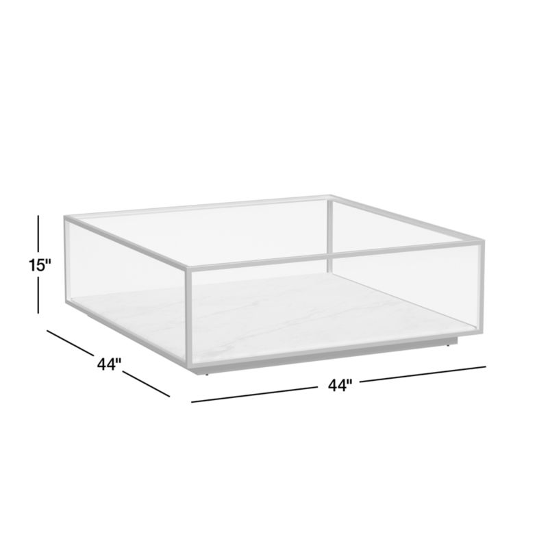 Modernist Metal and Glass 44" Square Display Coffee Table with Marble Shelf