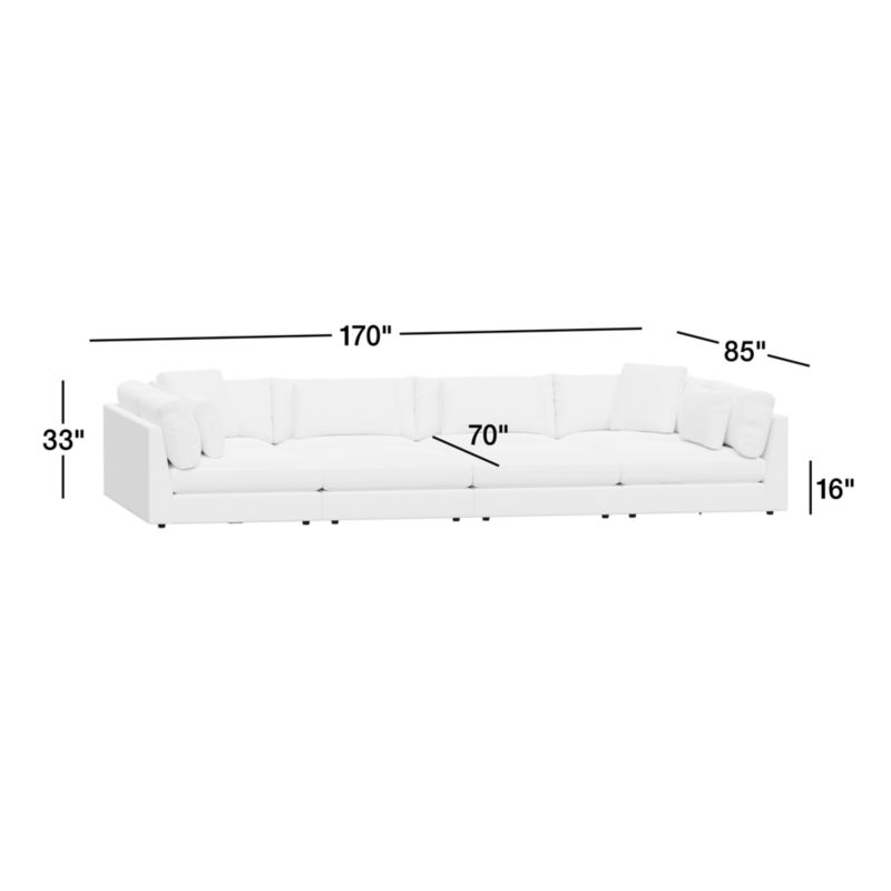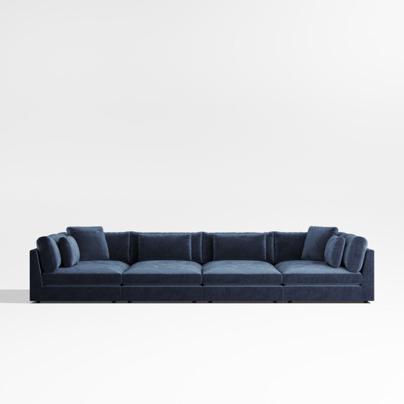 Stunning Monterey brings its sumptuous upholstery and clean, timeless lines to any style room—from cocktail-hour sophisticated to movie-night casual. Arranged as a pit-style configuration, this six-piece combination—right- and left-arm sofas, two armless chairs and two ottomans—provides ultimate comfort. Deep, curl-up seat cushions beckon along with plush throw and lumbar back pillows that prop up the perfect perch. We're smitten with the vintage vibe of Cypress, our highly durable, velvety soft, family-friendly upholstery in luminescent sapphire Night.