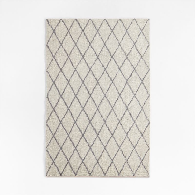 Keep it on-trend with the casual, relaxed vibe of our Moroccan Arlequin Diamond handwoven rug. Skilled artisans weave each rug using long-fiber wool yarn prized for its incomparable softness, long-lasting durability, and resistance to staining and shedding. Plus, its neutral color combo of ivory and light grey will seamlessly transition from nursery to big-kid room. Win-win!