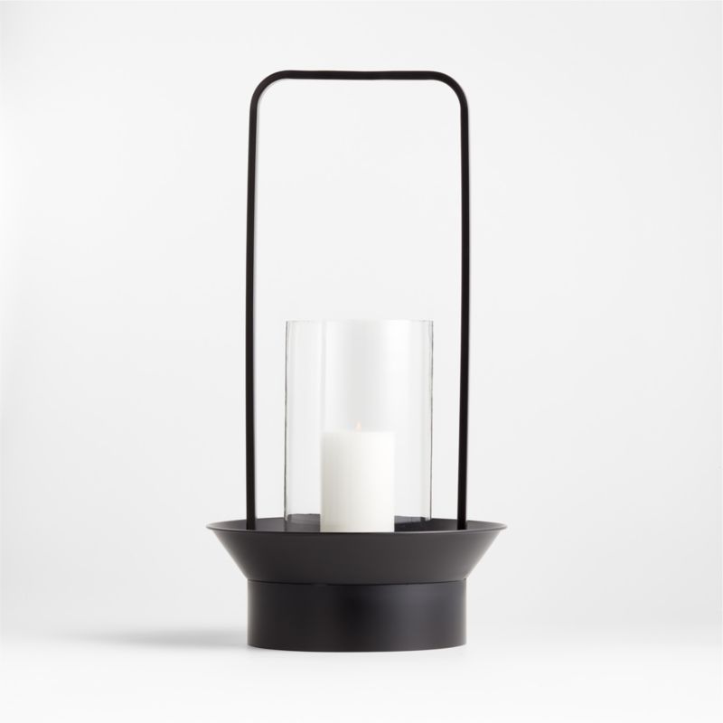 Black iron bends a graceful handle for our Morocco lantern, encouraging you to bring it along wherever soft illumination and a candlelit atmosphere is needed. Clean curves shape the modern lantern, from the circles that form the fluted base to the cylindrical glass hurricane and the rounded corners of the handle. Extra-tall and streamlined, our exclusive black metal lantern shines on a console table, mantel or outdoor side table.