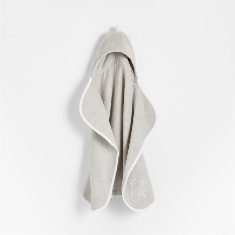 Made of 100% organic cotton, our Nachi hooded baby towel features delightful embroidery of a pleasant pachyderm. The towel's grey terry pile is soft, absorbent and ever-so gentle on sensitive skin, and the edges are reinforced with smooth cotton trim for added durability. A tufted tassel tops the hood. Pair the hooded baby towel with grey Nachi washcloths for a coordinated look or a thoughtful baby shower gift.