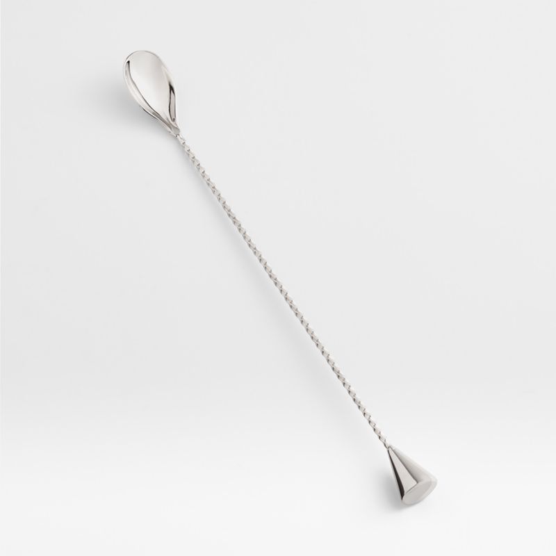 Designed for the home bartender and entertaining enthusiast, our Nara bar collection pays tribute to the elevated style and reverence for tradition found in Japanese cocktail culture and grand hotel bar service. The stainless steel bar spoon has a long, swirled handle for a long reach and good grip and a small spoon head that's angled perfectly to reach under ice for thorough mixing of ingredients. The dual-purpose tool has a muddler at the end of the spoon to crush herbs and fruit for added flavor and aroma.