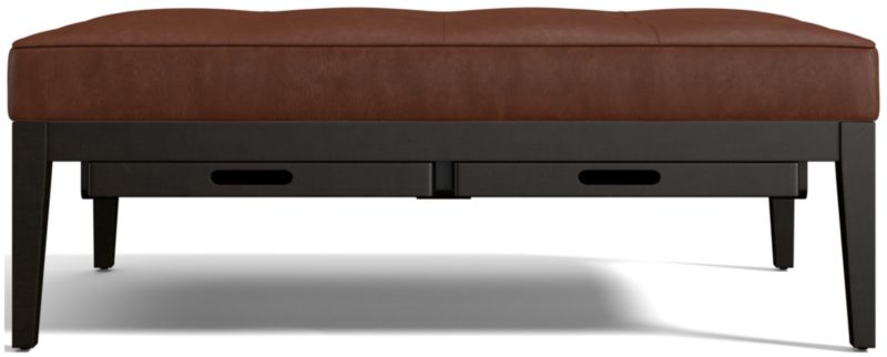 Parked in front of a sofa or sectional, our rectangular ottoman is entertainment central. Nash doubles up as an extra seat or cocktail table and offers two removable serving trays, cleverly concealed under its cushioned top. Upholstered in leather, the ottoman is neatly tailored with topstitching and buttonless tufting.