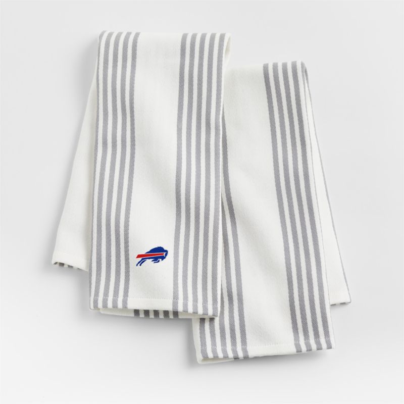 NFL Buffalo Bills Cuisine White with Grey Stripe Organic Cotton Dish Towels, Set of 2