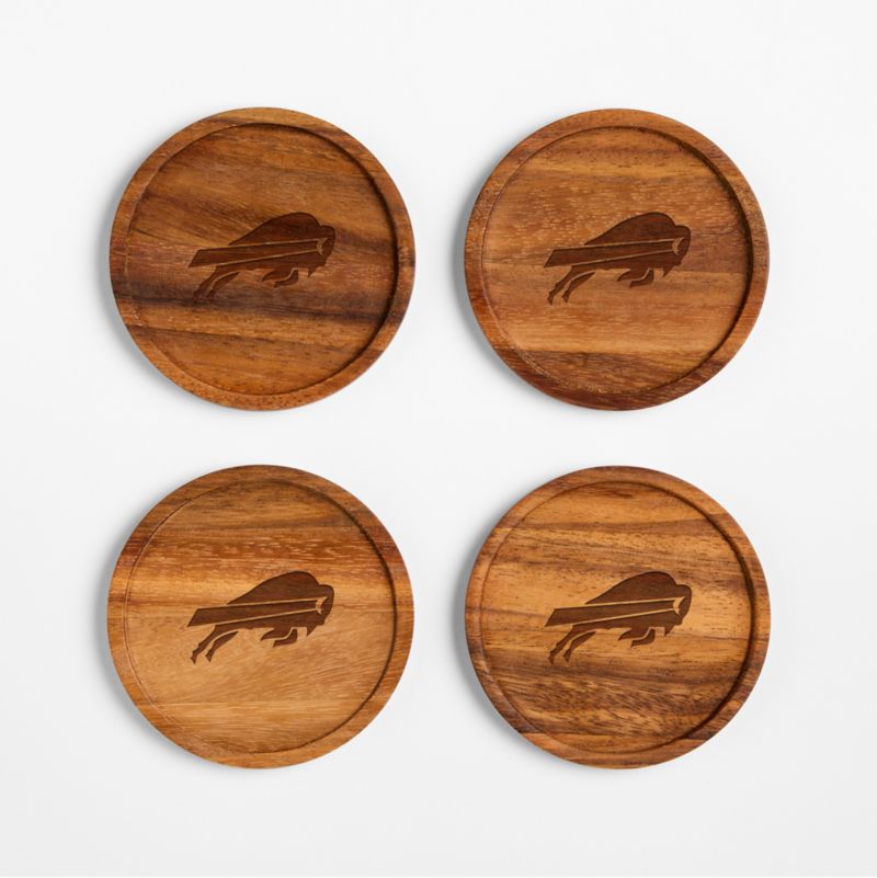 Celebrate your team on game day (and every day). Our simply designed Tondo coasters put the beauty of natural acacia in plain sight. Each of the four handcarved coasters in the set exhibits its own unique grain pattern. Raised edges keep drinks secure and prevent leaking of condensation onto table surfaces. For a beautifully coordinated table or bar, pair the wood coasters with the other acacia pieces in our Tondo serving collection.