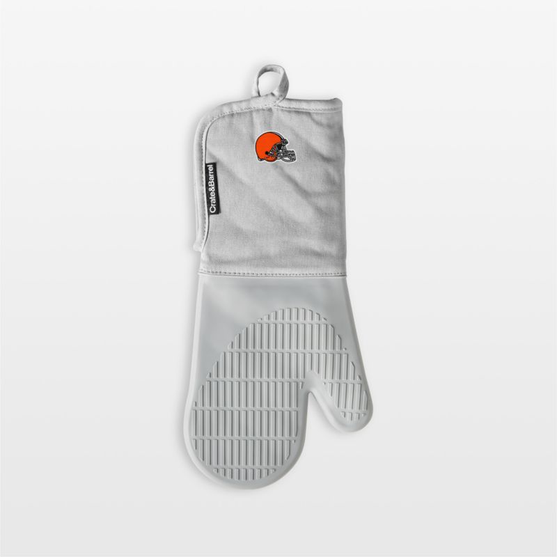 Celebrate your team on game day (and every day). Keep your cool with our exclusive grey oven mitt with silicone grip. Lined with terry cloth, the organic cotton mitt protects your arm and hand as you cook or bake. The silicone grip provides a solid, heat-resistant hold on hot skillet handles, cast iron pans and just-from-the-oven baking dishes. When not in use, the silicone oven mitt hangs within easy reach thanks to a hanging loop and hidden magnet. For a cohesive look, pair with the matching pot holder and our other grey kitchen textiles.