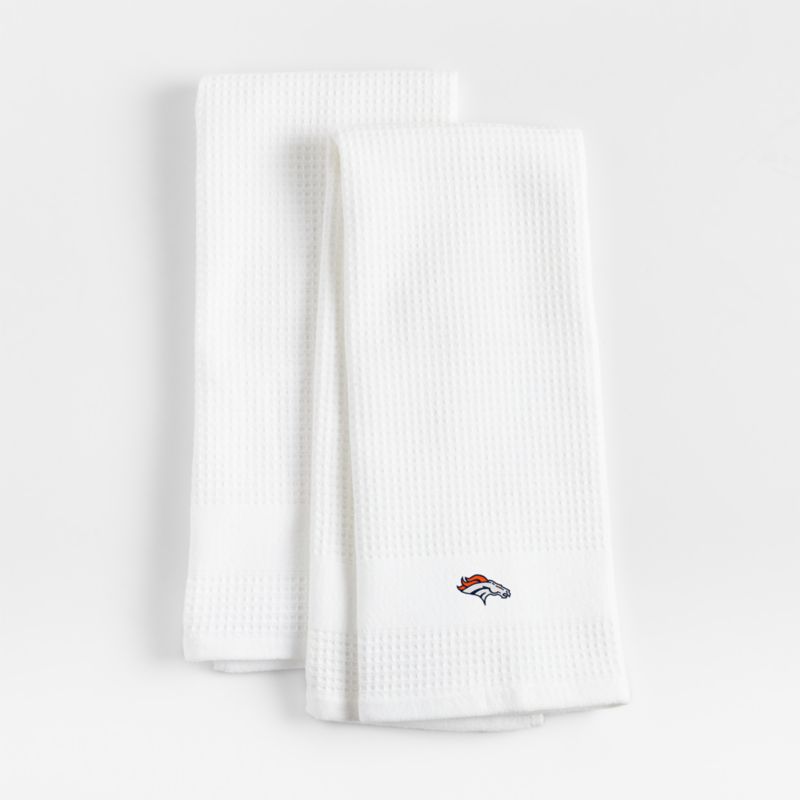 NFL Denver Broncos Waffle-Terry White Organic Cotton Kitchen Towels, Set of 2