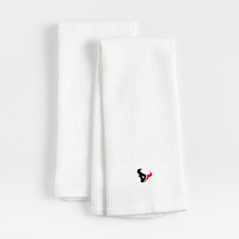 Celebrate your team on game day (and every day). No need to choose, our deeply plush and absorbent organic cotton towels mix up classic terry and a soft-washed waffle weave in bright white. The textured, waffled sides dry delicate glassware to a lint-free finish, while the terry cloth sides are ideal for drying pots and pans.