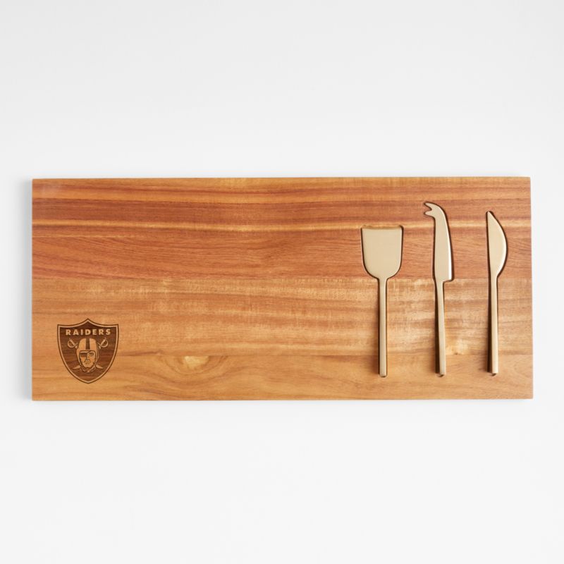 NFL Las Vegas Raiders Octavia Small Wood Serving Board With Cheese Knives