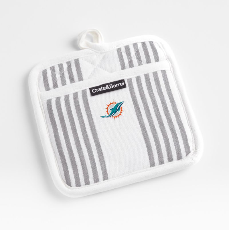 Celebrate your team on game day (and every day). Simple kitchen essentials in quality cotton are striped thick and thin in bright white and soft grey. Our organic cotton pot holder cleans up easily in the washing machine and gets softer with use and laundering. Pair our exclusive hot pad with our other grey-and-white Cuisine Stripe textiles for a classic and coordinated kitchen.