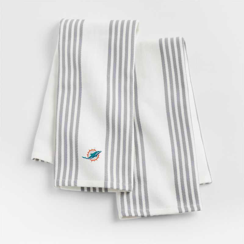 Celebrate your team on game day (and every day). Simple kitchen essentials in organic cotton are striped thick and thin in bright white and soft grey. Soft-washed for extra absorbency, our exclusive dish towels only get softer with use and laundering. Pair this set of two towels with our other grey-and-white Cuisine Stripe textiles for a coordinated and classic kitchen.