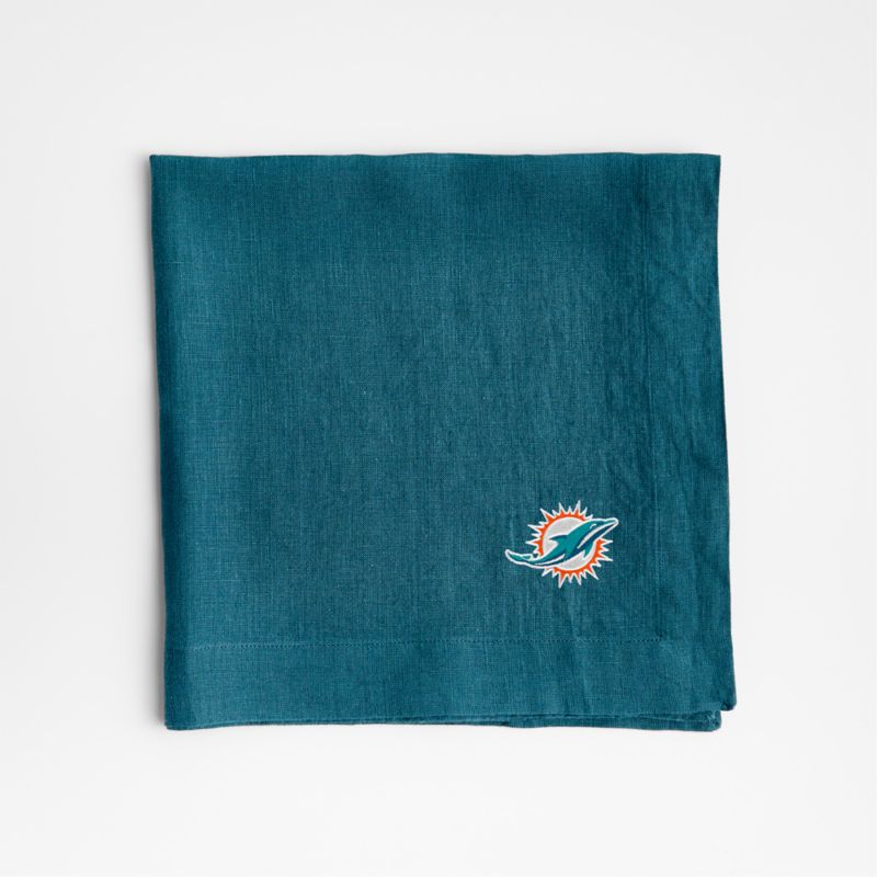 Celebrate your team on game day (and every day). Our pure linen cloth napkin unfolds to a generous 22-inch square in lush blue-green. Pre-washed for softness, the sea blue napkin pairs with our dinnerware for a vibrant look. Tailor-finished with a 1.5-inch hem and mitered corners, the machine-washable linen napkin is a Crate & Barrel exclusive.