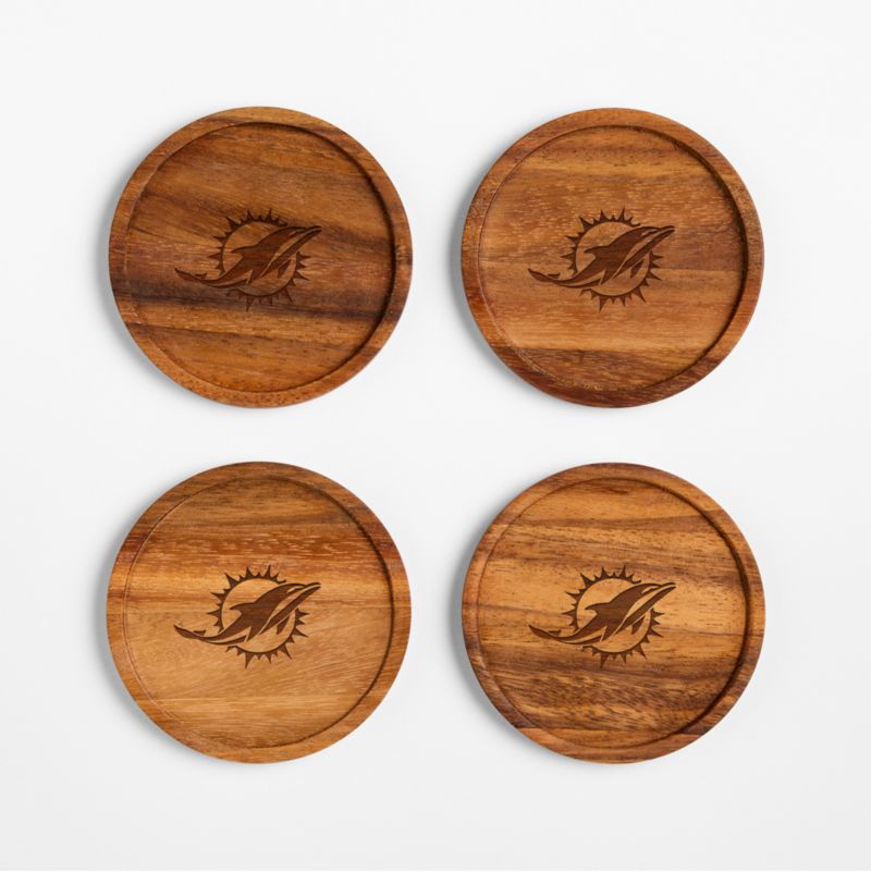 Celebrate your team on game day (and every day). Our simply designed Tondo coasters put the beauty of natural acacia in plain sight. Each of the four handcarved coasters in the set exhibits its own unique grain pattern. Raised edges keep drinks secure and prevent leaking of condensation onto table surfaces. For a beautifully coordinated table or bar, pair the wood coasters with the other acacia pieces in our Tondo serving collection.
