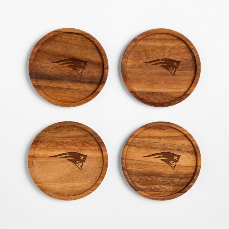 Celebrate your team on game day (and every day). Our simply designed Tondo coasters put the beauty of natural acacia in plain sight. Each of the four handcarved coasters in the set exhibits its own unique grain pattern. Raised edges keep drinks secure and prevent leaking of condensation onto table surfaces. For a beautifully coordinated table or bar, pair the wood coasters with the other acacia pieces in our Tondo serving collection.