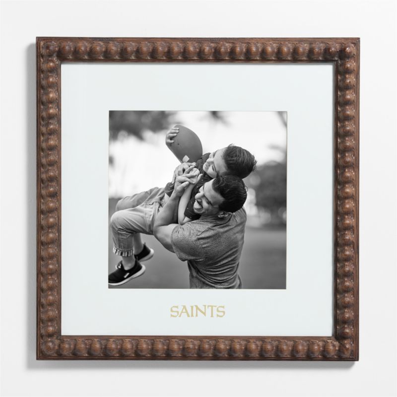 NFL New Orleans Saints Elmhurst Beaded Walnut Wood 11x11 Wall Picture Frame with 2 Mats 11x11 and 5x5