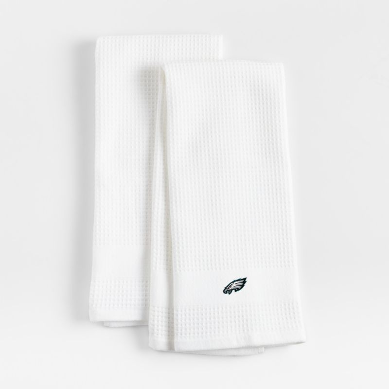 Celebrate your team on game day (and every day). No need to choose, our deeply plush and absorbent organic cotton towels mix up classic terry and a soft-washed waffle weave in bright white. The textured, waffled sides dry delicate glassware to a lint-free finish, while the terry cloth sides are ideal for drying pots and pans.